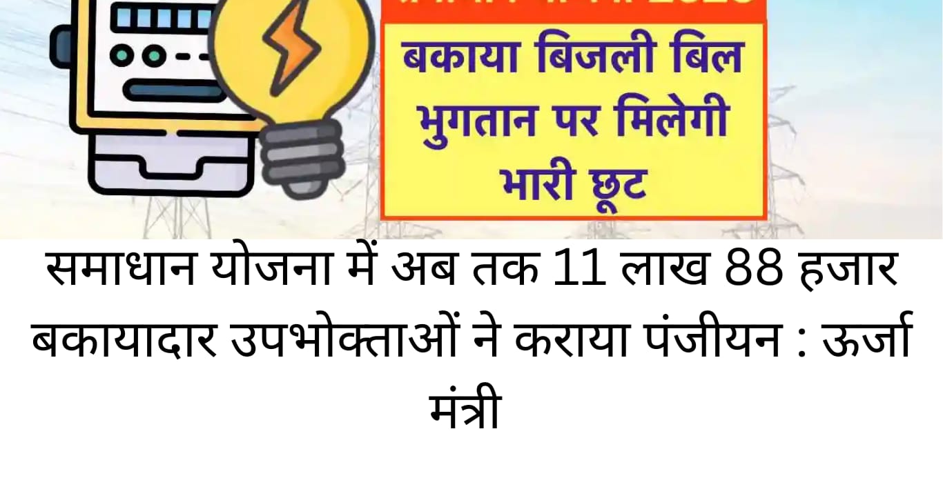 समाधान योजना में अब तक 11 लाख 88 हजार बकायादार उपभोक्ताओं ने कराया पंजीयन : ऊर्जा मंत्री